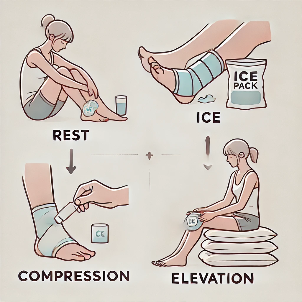 RICE merupakan singkatan dari Rest, Ice, Compression dan Elevation sebagai cara melakukan pertolongan pertama untuk menangani awal cedera pada tulang dan sendi, seperti keseleo, terkilir atau memar. RICE dilakukan untuk mengurangi pembengkakan dan rasa nyeri.
